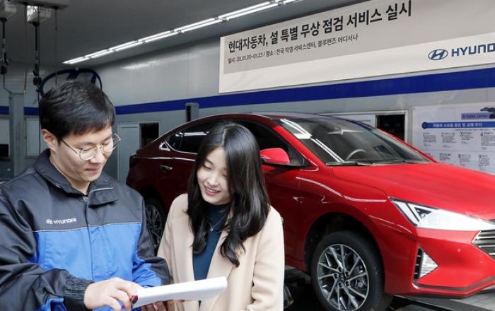 현대·기아자동차가 설 연휴를 맞아 1월 20일(월)부터 23일(목)까지 전국 서비스 거점 방문 고객을 대상으로 '설 특별 무상 점검 서비스'를 실시한다고 13일(월) 밝혔다.현대자동차는 전국 22개 서비스센터와 1,378개 블루핸즈에서, 기아자동차는 전국 18개 서비스