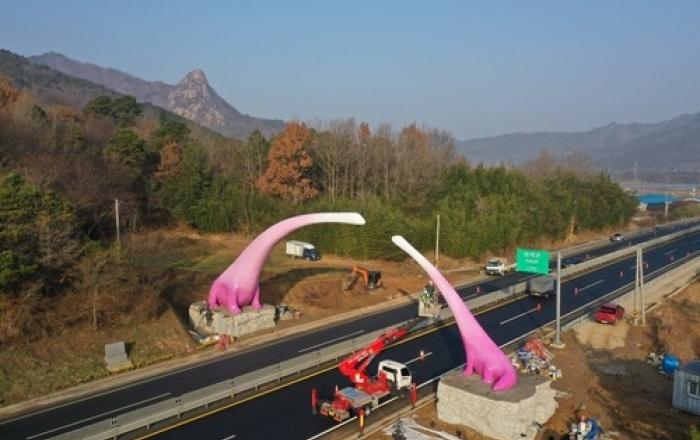 전남 해남군 초입에 방문객을 반기는 대형 공룡 조형물이 세워져 눈길을 끌고 있다.해남군은 군의 관문인 국도 13호선 진입로에 해남 경계의 시작을 알리는 공룡 조형물을 설치하고 있다.조형물은 우항리 공룡화석지가 형성된 백악기 시대에 살았던 말라위사우르스를 모티브로 제작됐