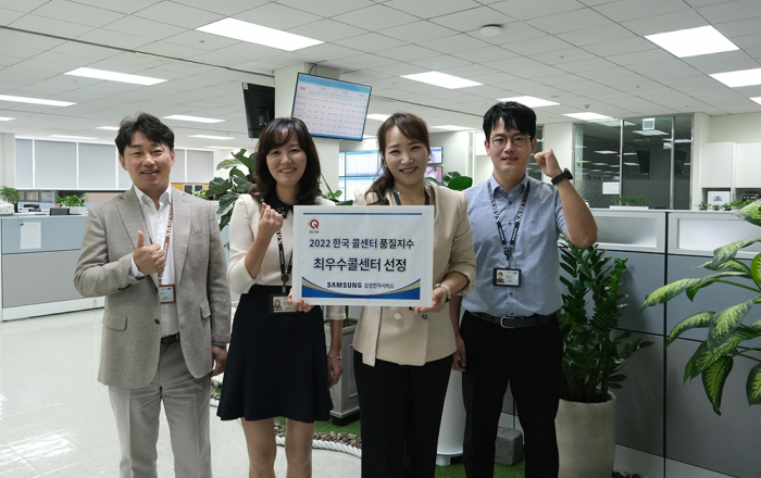 삼성전자서비스가 ‘2022 콜센터품질지수(KS-CQI)’에서 ‘가전제품’ 부문 최우수기업에 4년 연속 선정됐다. 한국표준협회가 주관하는 ‘KS-CQI’는 59개 업종, 209개 기업을 대상으로 ‘전화 모니터링 평가’와 ‘만족도 조사’를 실시해 콜센터의 서비스 품질을
