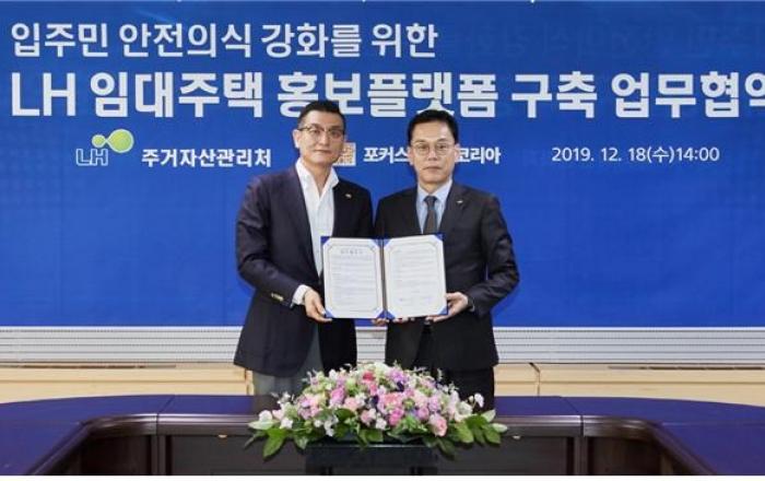 LH는 포커스미디어코리아(주)와 함께 LH 임대주택단지에 입주민 안전의식 강화를 위한 ‘홍보플랫폼’을 구축하기로 하고 지난 18일 업무협약을 체결했다고 밝혔다.‘홍보플랫폼’은 LH 임대주택 승강기에 홍보모니터를 설치해 화재예방 동영상과 애니메이션 등 안전교육을 위한 공