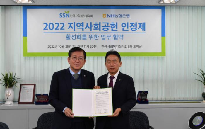 NH농협은행은 지난 25일 한국사회복지협의회와 지역사회공헌 인정제 활성화를 위한 업무 협약을 체결했다고 26일 밝혔다. 지역사회공헌 인정제는 비영리단체와 파트너십을 맺고 꾸준한 지역사회공헌 활동을 펼친 기업과 기관을 발굴해 공로를 인정해주는 제도다. 2019년