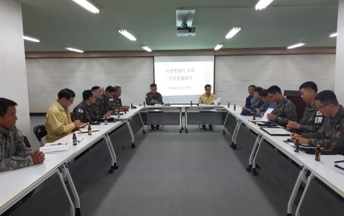 파주시는 10월 15~16일 2일간 아프리카돼지열병(ASF) 확산 방지를 위해 육군 제1보병 사단과 함께 민통선 내 대대적인 야생멧돼지 포획을 실시한다.파주시와 1사단은 14일 장단출장소에서 민통선 내 야생멧돼지 아프리카돼지열병 확산 방지를 위한 민·관·군 협력 회의를
