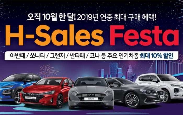 현대자동차는 10월부터 아반떼, 쏘나타, 그랜저, 코나, 싼타페 등 주요 인기 차종 약 1만 8천대를 대상으로 최소 3%에서 최대 10%까지 할인 혜택을 제공하는 ‘현대 세일즈 페스타(H – Sales Festa)’를 진행한다고 1일(화) 밝혔다.현대차는 2019년 한