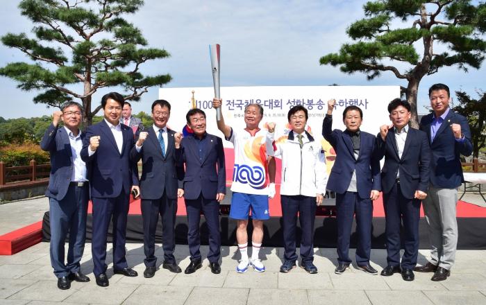 진주시는 25일 오전 11시 망경동 소재 남가람공원에서 100년의 전국체전 동안 계승되어 온 민족 체육정신과 생명력을 불꽃으로 승화시켜 미래 100년에 대한 희망과 화합의 메시지를 전파하기 위한 성화봉송 행사를 가졌다.이날 행사는 시민 300여 명이 참석한 가운데