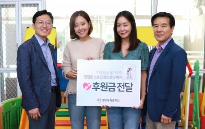 사회복지법인 대한사회복지회는 23일 배우 김정은과 소유진이 실시한 초콜릿바자 후원금을 대한사회복지회에 전달했다고 25일 밝혔다.9월 7일 강남구 신화코리아에서 진행된 ‘김정은 소유진의 초콜릿바자’는 친부모와 헤어져 시설에서 생활하는 아기들을 돕기 위해 두 배우가 직접
