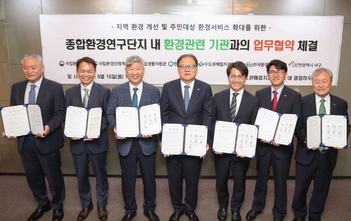 인천 서구는 종합환경연구단지의 환경부 소속 6개 기관과 지난 16일, 지역 환경개선 및 주민대상 환경서비스 확대를 위한 업무협약을 체결했다고 밝혔다.이번 협약에 참여한 기관은 국립환경과학원(원장 장윤석), 국립환경인재개발원(원장 이병화), 국립생물자원관(관장 배연재),