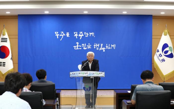 무주군이 향로산 정상 태권브이랜드 조성 사업(이하 태권브이랜드 조성 사업)을 전면 재검토하기로 결정했다. 이 같은 결정은 산림과 경관훼손, 미흡한 관광효과를 고려한 것으로 향후 진행 상황에도 관심이 쏠리고 있다. 황인홍 군수는 지난 16일 무주군청 대회의실에서 열