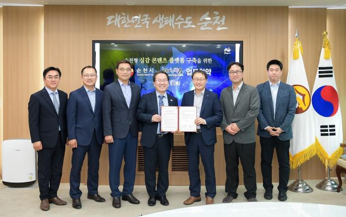 순천시는 5일 한국가상증강현실산업협회(회장 구현모와 VR·AR기반 순천형 실감 콘텐츠 플랫폼 육성 업무협약(MOU)을 체결했다.이번 협약으로 순천시와 협회는 ▲ 순천형 VR·AR 플랫폼 구축 및 콘텐츠 발굴을 위한 추진 계획 수립 ▲ 순천시 VR·AR 인력 양성 및 제