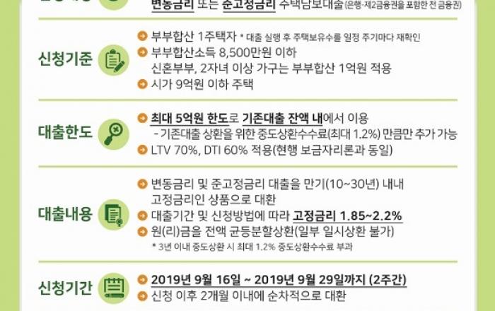 기존 변동금리나 준고정금리 주택담보대출을 최저 연 1%대의 장기 고정금리로 갈아탈 수 있는 ‘서민형 안심전환대출’이 내달 16일에 출시된다.대출 공급 총량은 20조 원 내외로, 신청액이 20조 원을 크게 넘어서면 주택가격이 낮은 순서대로 20조 까지만 대출된다.26일