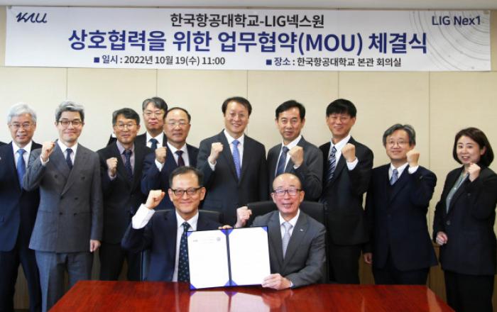 LIG넥스원은 한국항공대학교와 손잡고 우주산업 분야 기술 및 학술정보를 교류하고 공동 인재 육성에 나선다.LIG넥스원은 19일 경기도 고양시 한국항공대학교 본관에서 한국항공대와 ‘우주산업 분야 산학협력 및 인재양성을 위한 업무협약(MOU)’을 체결했다고 밝혔다.이날 행