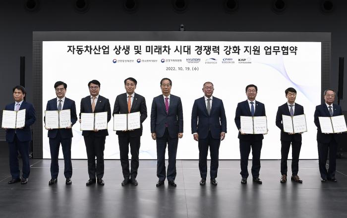 국내 자동차 부품업계의 성공적인 전동화 체제 구축을 위해 현대자동차그룹과 정부, 유관기관이 협력한다.현대자동차그룹은 10월 19일(수) 경기도 화성시 소재 현대차·기아 기술연구소에서 산업통상자원부, 중소벤처기업부, 공정거래위원회, 한국자동차연구원, 한국공정거래조정원,
