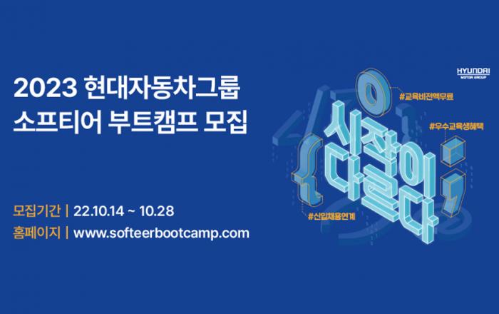 현대자동차그룹이 채용 연계형 교육과정인 「소프티어 부트캠프 2023」을 개최하고 참가자 모집에 나섰다. 현대자동차그룹이 부트캠프를 개최하는 것은 이번이 처음이다.현대자동차그룹은 오는 28일(금)까지 역량있는 신입 소프트웨어 개발자를 직접 양성하고, 우수 역량을 보유한