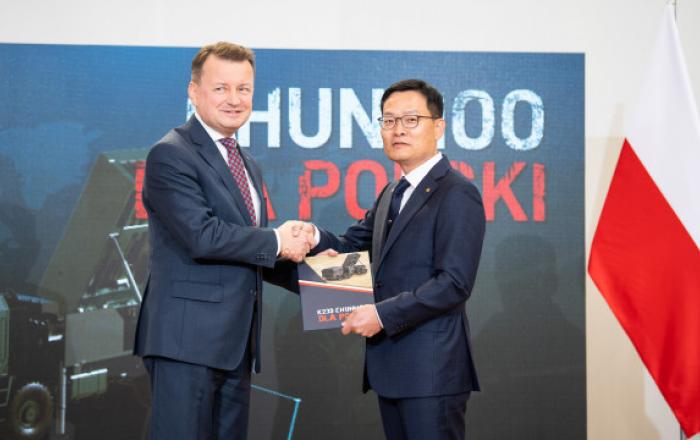 한화디펜스가 폴란드와 ‘천무’ 다연장로켓 공급을 위한 기본계약(Framework Contract)을 체결하며 한화그룹 방산 사업 통합 시너지를 강화했다.한화디펜스는 19일 폴란드 바르샤바에서 천무 다연장로켓 발사대 288대와 유도탄 수출을 위한 기본계약(Framewor