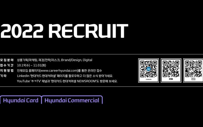 국내 대표적인 금융테크 기업 현대카드와 국내 산업금융 시장을 이끌고 있는 현대커머셜이 ‘2022 신입사원 공개 모집’을 실시한다고 19일 밝혔다.이번에 진행하는 신입사원 공개 모집은 지난 2018년 이후 4년 만에 재개되는 것으로, 모집 분야는 상품기획∙마케팅, 재경∙