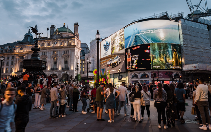 삼성전자가 2030 부산세계박람회 유치위원회와 함께 영국 런던 피카딜리 광장, 홍콩 엔터테인먼트 빌딩 등 전 세계 주요 랜드마크의 대형 LED 전광판을 통해 ‘2030 부산세계박람회’ 홍보 영상을 선보이고 있다. 영국 런던 피카딜리 광장과 홍콩 엔터테인먼트 빌딩은 일