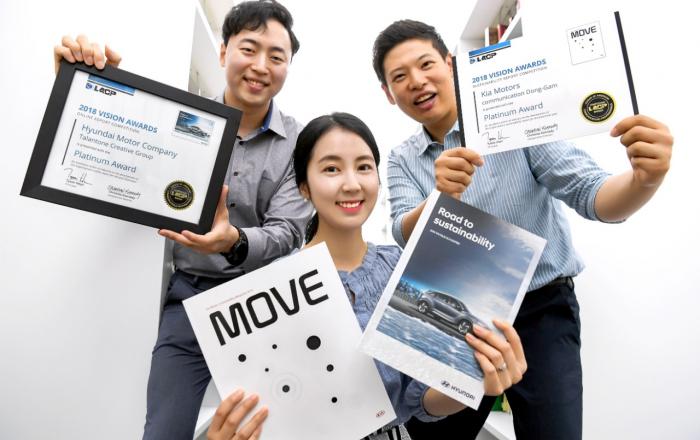 현대·기아자동차의 지속가능경영 보고서가 글로벌 연차 보고서 평가에서 대상을 동시 수상했다.현대·기아차는 24일(수) ‘2018 LACP 비전 어워드(Vision Awards)’에서 각 회사의 지속가능경영 보고서가 디지털/온라인(Online Report) 부문(현대차)과