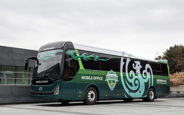 현대자동차는 6일(월) ‘유니버스 작전지휘차’를 처음 공개하고, 2021년 K리그 우승으로 사상 첫 5연패를 달성한 전북 현대 모터스 축구팀에 전달했다.유니버스 작전지휘차는 현대자동차의 프리미엄 고속버스인 유니버스를 사무 공간으로 커스터 마이징한 ‘유니버스 모바일 오피
