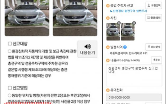 친환경자동차 충전구역에서의 불법주차 등을 신고할 수 있도록 지난 7일부터 안전신문고 앱(APP)에 전용 신고 창구가 개설됐다. 친환경자동차 충전구역 및 전용주차구역의 불법주차는 물론, 물건 적재나 충전시간(급속시설 1시간, 완충시설 14시간) 초과 주차 행위 등도