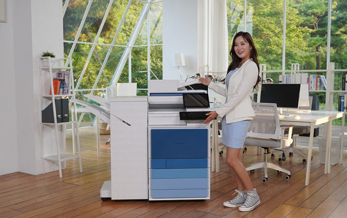 삼성전자가 디자인과 사용 편의성을 한층 업그레이드 시킨 기업용 디지털 복합기 신제품 ‘MX Pro’를 국내 시장에 출시했다고 11일 밝혔다. MX Pro는 기존의 무채색 외관 디자인에서 벗어나 전면부에 블루를 기본으로 레드ㆍ그린ㆍ퍼플ㆍ옐로우ㆍ그레이 총 6가지 색상을
