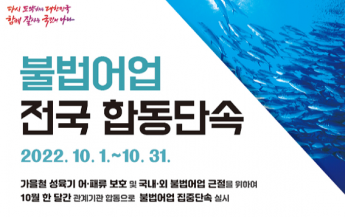 해양수산부는 가을철 성어기를 맞아 오는 10월 한 달 동안을 불법어업 전국 합동단속 기간으로 정하고 지자체, 해양경찰청 등 관계기관과 함께 집중 지도·단속을 실시한다고 28일 밝혔다. 이번 합동단속에는 동·서·남해와 제주 등 4개 해역에 국가 및 지방어업지도선 4