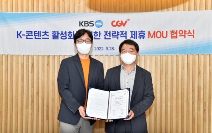 CJ CGV가 한국방송공사(이하 KBS)와 손잡고 K콘텐츠 발전을 위한 다양한 방안을 모색한다. CJ CGV는 KBS와 K콘텐츠 활성화 및 발전을 위한 전략적 업무 협약(MOU)을 28일 체결했다고 밝혔다. KBS 별관에서 열린 이날 협약식에는 KBS 이건준 드라마센터
