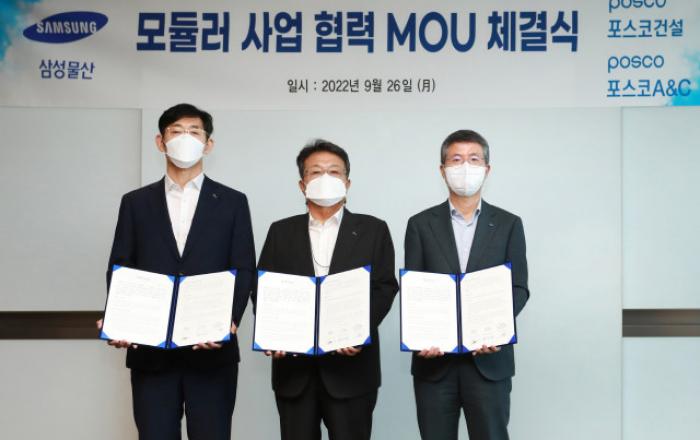 삼성물산 건설부문과 포스코건설, 포스코A&C가 글로벌 모듈러 시장 진출을 위해 손을 잡는다.삼성물산 건설부문(이하 삼성물산)과 포스코건설, 포스코A&C 3사는 ‘모듈러 사업 협력 업무협약(MOU)’ 을 체결하고, 각 사의 역량과 강점을 활용해 국내·외 모