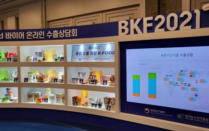 한국 농식품의 해외 진출을 확대하기 위해 ‘2021 K-박람회’와 연계한 대규모 농식품 수출상담회가 열렸다.농림축산식품부는 지난 8일부터 11일까지 4일간 서울 코엑스 및 온라인을 통해 ‘대규모 수출상담회(BKF:Buy Korean Food)’를 개최했다고 15일 밝혔