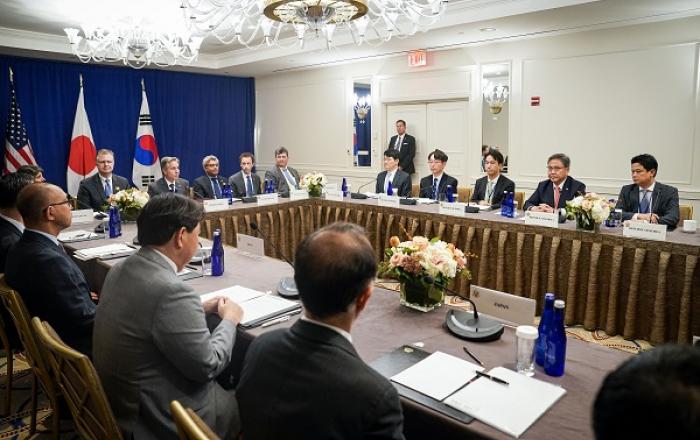 외교부는 22일(현지시간) 미국 뉴욕에서 박진 장관이 유엔총회를 계기로 안토니 블링컨 미국 국무부 장관 및 하야시 요시마사 일본 외무대신과 한미일 외교장관회담을 갖고 한반도 문제와 지역·글로벌 현안 대응을 위한 3국 간 공조 강화 방안에 대해 논의했다고 밝혔다.