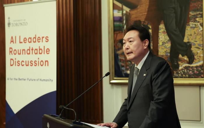 캐나다를 방문 중인 윤석열 대통령은 22일(현지시간) 첫 일정으로 토론토대학에서 인공지능(AI) 전문가 간담회를 진행했다고 대통령실이 밝혔다. 이 자리에서 윤 대통령은 한국의 인공지능 기술과 산업을 세계적인 수준으로 도약시키기 위한 방안에 대해 석학들과 의견을 교