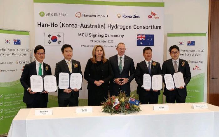 고려아연과 고려아연의 호주 자회사인 아크 에너지(Ark Energy)가 한화임팩트, SK가스와 함께 한국-호주 수소(한·호 H2) 컨소시엄을 출범하고, 2032년까지 연간 100만 톤 이상의 그린 암모니아를 호주에서 한국으로 수출하는 공급망을 구축하기 위한 양해각서(M