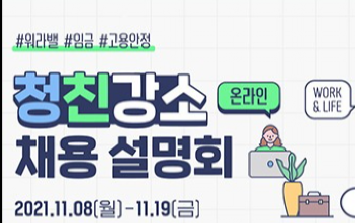 고용노동부가 8일부터 19일까지 2주 동안 온라인에서 취업상담과 취업 특강 등을 진행하는 청년친화강소기업 채용설명회를 개최한다.특히 ‘임금·일생활균형·고용안정’이 뛰어난 기업 100여 개를 중심으로 채용설명회를 진행하는데, 유망기업의 취업정보 외에도 취업에 도움되는 다