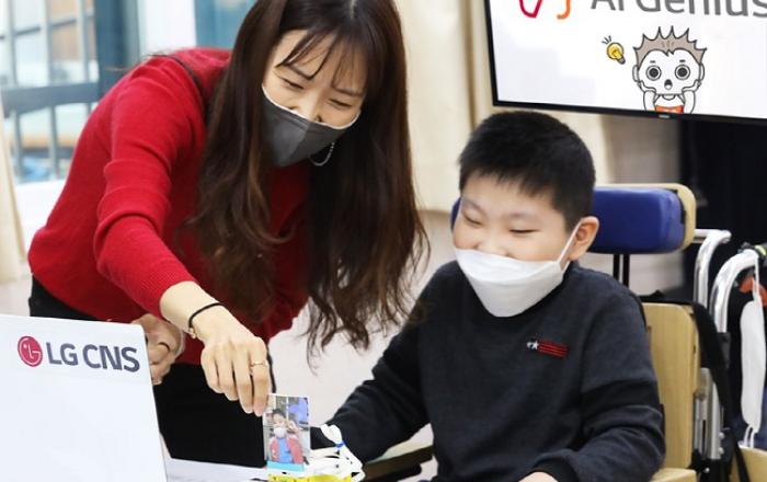 LG CNS는 지난 3일 지체장애 특수학교 서울새롬학교 학생들을 대상으로 AI 교육 프로그램 ‘AI지니어스’를 실시했다. 올해 35개 중·고등학교에 AI 교육을 진행하는데 이어, 특수학교로 교육 대상을 확대한 것이다.AI지니어스는 청소년들이 AI 기술을 이해하고 활용해