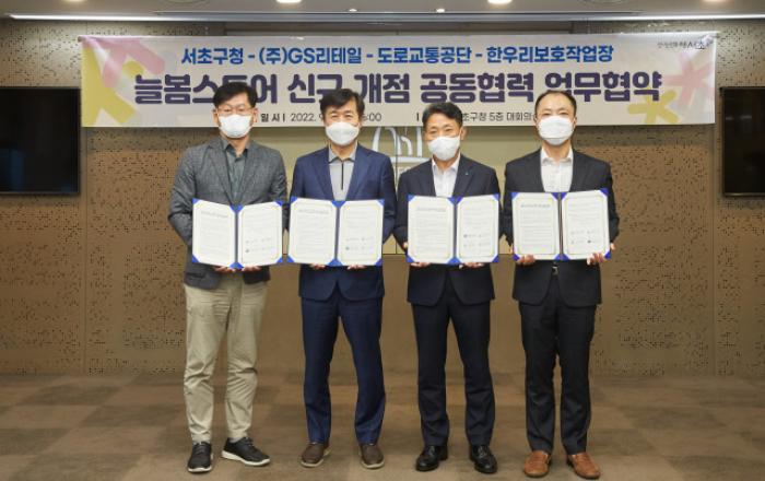 도로교통공단 서울지부가 서울 서초구청, GS리테일, 한우리보호작업장과 장애인 직업훈련형 편의점인 늘봄스토어(GS25 서울도로교통공단점) 신규 개점을 위한 공동협력 업무협약을 체결했다고 20일 밝혔다. 이날 협약식은 김연화 도로교통공단 서울지부 지역본부장, 전성수