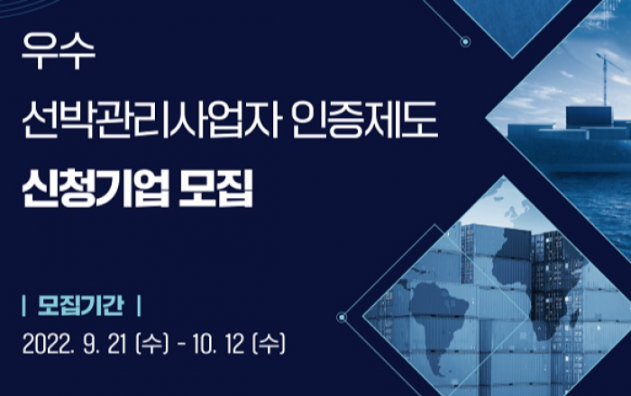 해양수산부는 오는 21일부터 다음 달 12일까지 3주간 ‘우수 선박관리사업자 인증’ 공모 신청을 받는다고 20일 밝혔다. 우수 선박관리사업자 인증은 선박관리산업발전법에 따라 지난해부터 시행하고 있는 제도다. 선박관리 기업역량과 서비스 및 품질이 우수한 우리나라 선