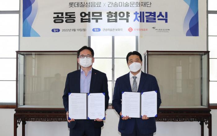 롯데칠성음료가 19일 간송미술문화재단과 함께 한국 미술 산업의 성장과 발전을 위한 업무 협약을 진행했다.롯데칠성음료와 간송미술문화재단은 이번 업무 협약을 통해 간송미술문화재단이 보유한 미술품을 기반으로 다양한 컬래버 제품을 운영하며, 국내외 소비자들에게 간송미술문화재단