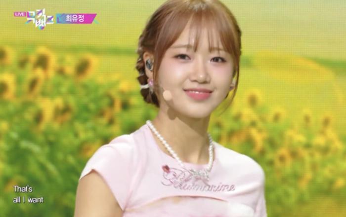 그룹 위키미키(Weki Meki) 최유정이 첫 솔로 데뷔 무대를 성공적으로 마쳤다. 최유정은 16일 방송된 KBS 2TV ‘뮤직뱅크’에 출연해 첫 번째 싱글 앨범 ‘Sunflower’(선플라워)의 타이틀곡 ‘Sunflower (P.E.L)’ 무대를 음악 방송 최초로