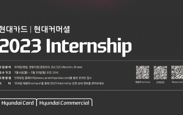 현대카드∙현대커머셜이 ‘2023 인턴십(Internship)’을 실시한다고 15일 밝혔다. ‘현대카드∙현대커머셜 인턴십(이하 인턴십)’은 현대카드∙현대커머셜이 신입사원 모집을 위해 실시하는 인턴십 프로그램이다. 인턴십 합격자들은 오는 5월부터 3주
