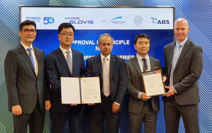 현대글로비스가 국내 대표 조선사와 협력해 세계 최대 액화이산화탄소(LCO₂) 운반선 개발을 위한 첫발을 디뎠다.현대글로비스는 현대중공업그룹과 공동 개발한 7만4000㎥ 급 액화이산화탄소 운반선 관련 미국선급(ABS, American Bureau of Shipping)과