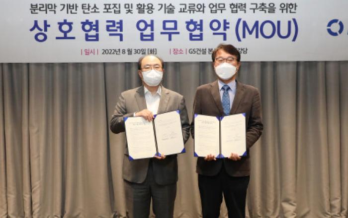 GS건설이 탄소 포집 플랜트의 핵심인 분리막 기술 개발에 나선다.GS건설은 8월 30일 서울 종로구 본사에서 RIF Tech. 권혁태 전무와 에어레인 하성용 사장 등 관계자 10여 명이 참석한 가운데 ‘분리막 기반 탄소 포집 및 활용 기술 교류와 업무 협력 구축’을 위