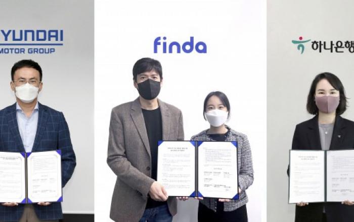현대차·기아와 핀다, 하나은행은 비대면 업무협약(MOU) 체결식을 통해 ‘현대차·기아 커넥티드카 기반 금융상품 개발 및 신사업 발굴 파트너십’을 체결했다고 18일 밝혔다.비대면 MOU 체결식에는 현대차·기아 TaaS 본부 정헌택 상무, 핀다 이혜민·박홍민 공동대표, 하