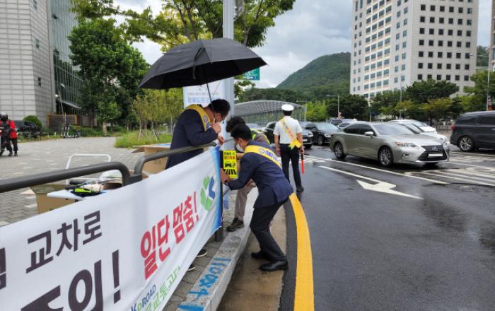 도로교통공단 서울지부가 서울서초경찰서와 8월 29일(월) 염곡사거리에서 ‘우회전 사고 예방 및 개정된 도로교통법 정착 홍보 캠페인’을 시민들의 호응 속에 마무리했다. 이번 캠페인은 2022년 7월 12일부터 시행 중인 개정 도로교통법(일시 정지 의무, 교차로 우회