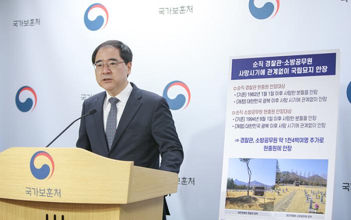 그동안 특정 시점 이전에 사망해 현충원에 안장될 수 없었던 경찰관과 소방공무원들의 현충원 안장이 가능해진다. 국가보훈처는 순직 경찰관과 소방공무원을 사망 시기에 관계 없이 현충원에 안장할 수 있도록 하는 내용의 ‘국립묘지의 설치 및 운영에 관한 법률’(이하 국