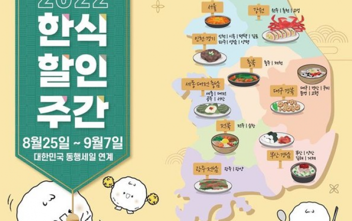 농림축산식품부와 한식진흥원은 오는 25일부터 다음달 7일까지 전국 160여개 한식당의 대표메뉴를 할인 판매하는 ‘한식 할인주간’ 행사를 개최한다고 22일 밝혔다. 이번 행사는 지역 한식당 홍보 및 물가 안정을 위해 추진된다. 할인기간 동안 안심식당으로 지정된 전