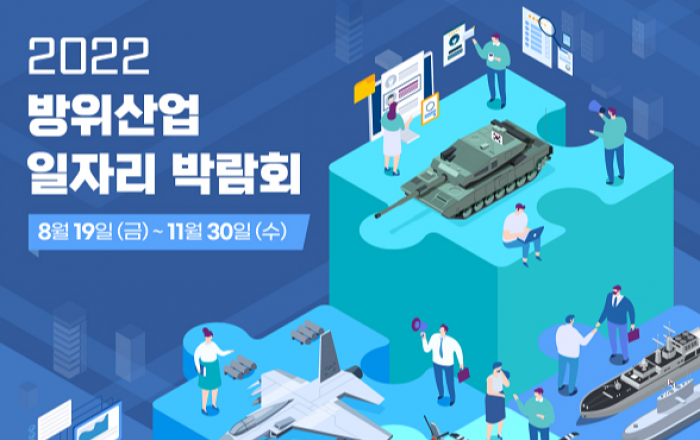 방위산업 관련 기업과 구직자를 연결하는 인재 채용의 장이 열린다. 방위사업청은 19일부터 ‘2022 방위산업 일자리 박람회’를 온·오프라인으로 개최한다고 밝혔다. 이날부터 박람회 홈페이지에 온라인 채용관을 개설해 취업전문포털 인크루트와 연계한 채용 정보를 제