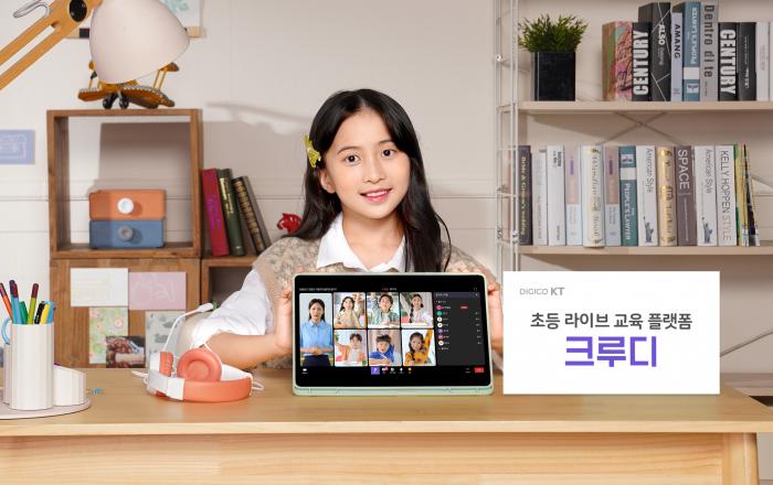 KT가 ABC(AI∙BigData∙Cloud) 기술 역량을 결집해 초등생 대상의 라이브 교육 서비스 ‘크루디(Crewdy)’를 선보인다고 18일 밝혔다. 크루디는 그룹을 의미하는 ‘크루(crew)’와 학습을 의미하는 ‘스터디(study)’를 결합한 것으로