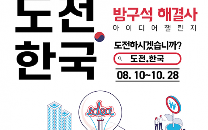 행정안전부가 오는 10일부터 10월 28일까지 국민참여형 사회문제 해결사업인 ‘도전.한국’ 국민 아이디어 공모를 시작한다고 9일 밝혔다. 이번 공모는 환경·생활·청소년 등 3개 분야 6개 과제를 대상으로 진행한다. 사회문제 해결에 관심 있는 국민·기업·단체 누구나