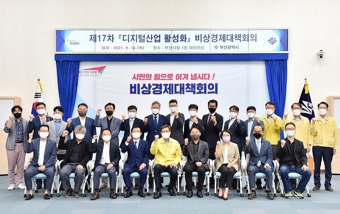 부산시는 디지털 대전환을 위한 대책으로 지난 8월에 발표한 ‘데이터 산업 육성방안’에 이어 두 번째 전략인 ‘디지털산업(디지털 전환산업 + 기존 ICT융합산업) 활성화 방안’을 주제로 오늘(16일) 제17차 「비상경제대책회의」를 개최하고 연구기관, 기업체, 교수 등 전