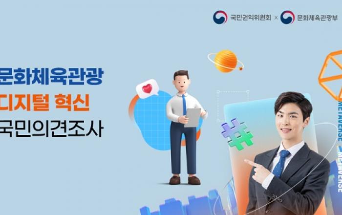 문화체육관광부는 오는 11일까지 문화·체육·관광 분야 디지털 혁신 정책과제 등에 대한 국민 의견을 듣는다고 2일 밝혔다. 이번 설문조사는 국민권익위원회가 운영하는 온라인 정책참여 창구인 ‘국민생각함’에서 진행한다. 설문조사에서는 문화 분야 디지털 서비