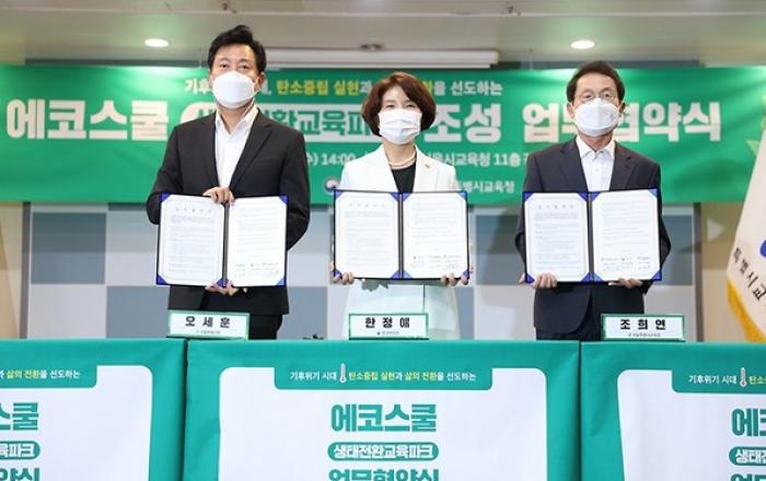 환경부는 교육부 및 전국시도교육감협의회와 13일 ‘2021환경공동선언식’을 개최하고 기후·환경교육 실행력 확보를 위한 실천을 선언했다.이날 오후 교육시설공제회관에서 개최된 선언식은 지난해 7월 열린 ‘기후위기 환경재난시대 학교환경교육을 위한 시도교육감 비상선언’ 이후