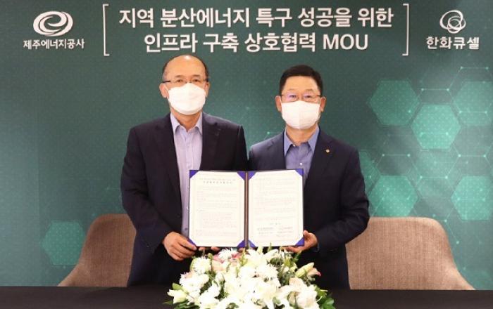 한화솔루션 큐셀 부문(이하 한화큐셀)은 지난 9일 서울 중구 장교동 한화빌딩에서 제주도 분산에너지 사업 협력을 위해 제주에너지공사와 양해각서(이하 MOU)를 체결했다. 분산에너지 시스템이란 기존 중앙집중형 전력수급시스템에 대비되는 개념으로 에너지의 사용지역 인근에서 에